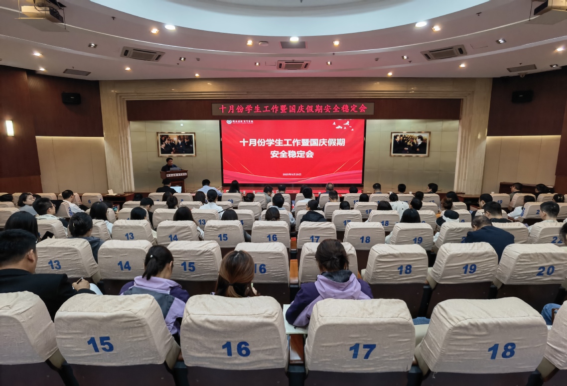 9月30日,学校在学术报告厅二楼召开十月份学生工作暨国庆安全稳定。学校党委副书记、副校长李吉友出席并讲话,学工系统全员及公寓物业管理人员等参加会议。会议由学生工作处相关负责人主持。